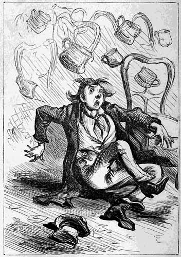 Josh Billings visits the new Skating Pond, and witnesses a rather interesting accident, which he describes as "a living lovely mass ov disastrous skirt and tapring ankle."—See page 12.