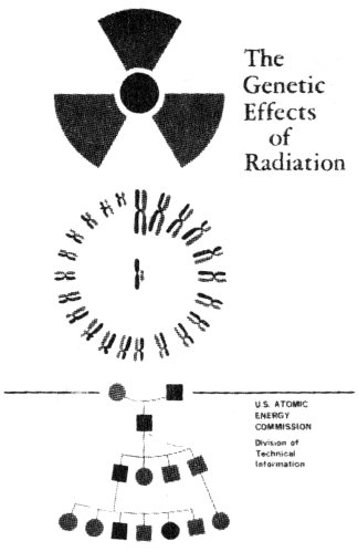 The cover design embodies a radiation symbol, a stylized karyotype of human chromosomes, and a genealogical table.