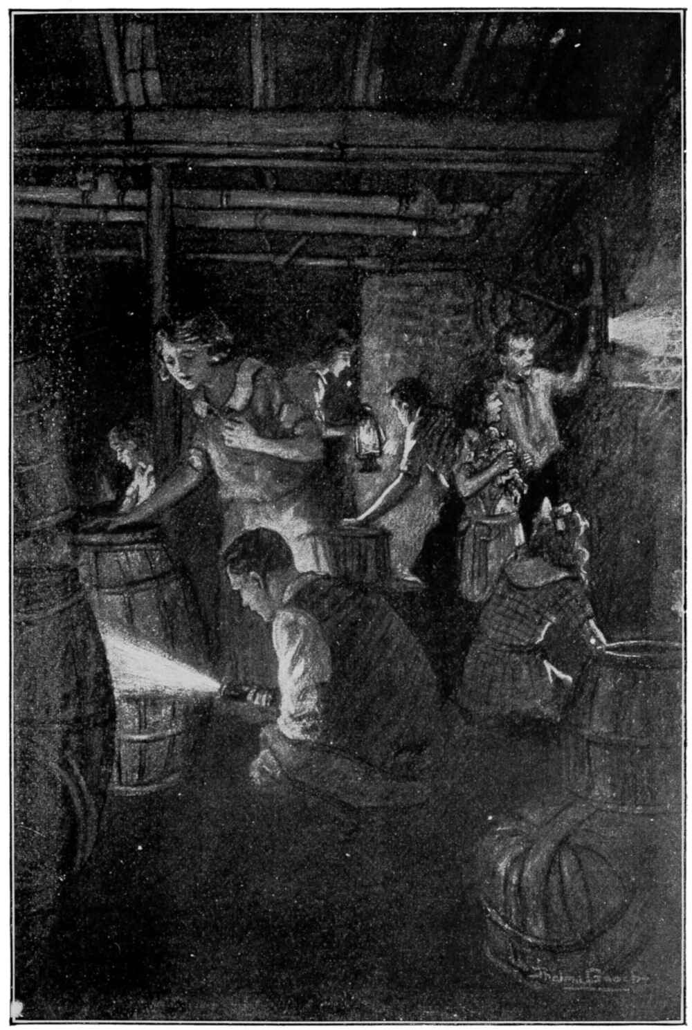 Dot did not finish. With whoops on the part of the boys and shrieks on the part of the girls, the whole party made a rush for the cellar. The afternoon sun was now shining in it, making the place fairly bright.