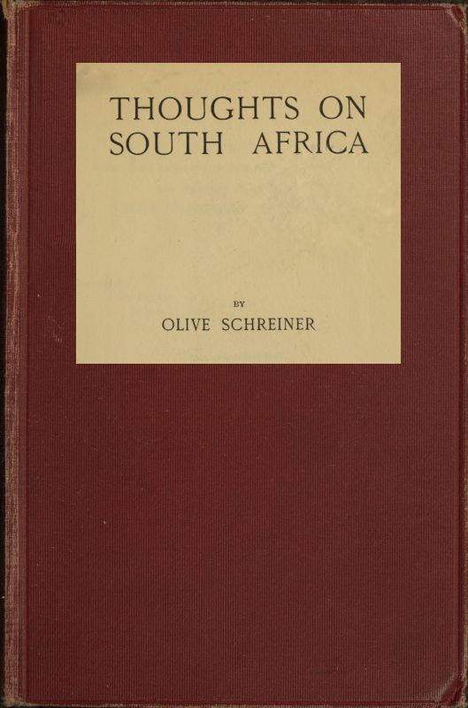 It is not a history, it is not a homily, it is not a political brochure—it is simply what one South African at the end of the nineteenth century thought, and felt, with regard to his native land: thought and felt with regard to its peoples, its problems and its scenery—it is nothing more than this; but it is also nothing less.