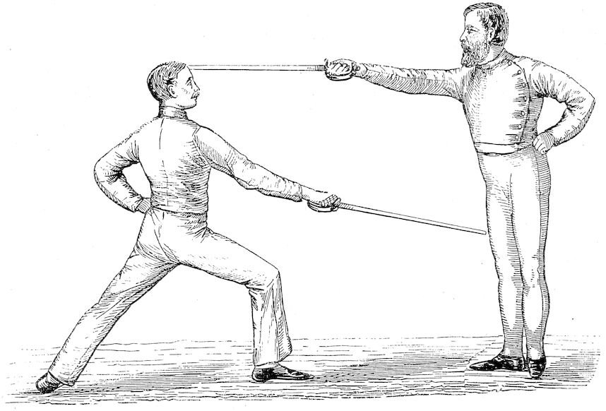 Daily combats gave me every opportunity for putting my ideas to the rough test of practice, and I soon found that I was not mistaken, and that there were longes and time thrusts which could be delivered with the sword, and were formidable even to the most skilled opponents. I made it, therefore, part of my work as a teacher and sabre player to improve sabre play by adapting to it many movements used in fencing which have hitherto been entirely overlooked by sabre players, and also by copying the fencer to make the attacks, &c., in a closer and consequently quicker and more effective manner than they had before been made.