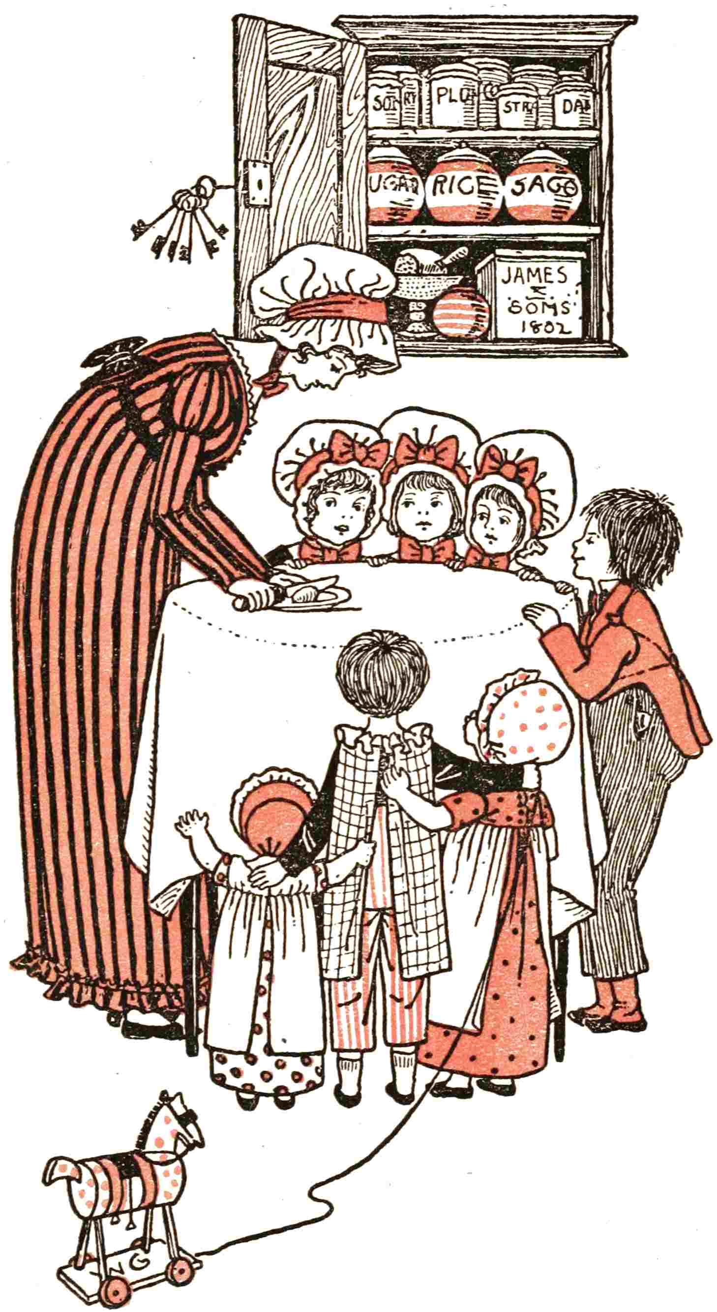 The color illustrations bear the artist’s initials, “WG”, but those were not transcribed as captions.