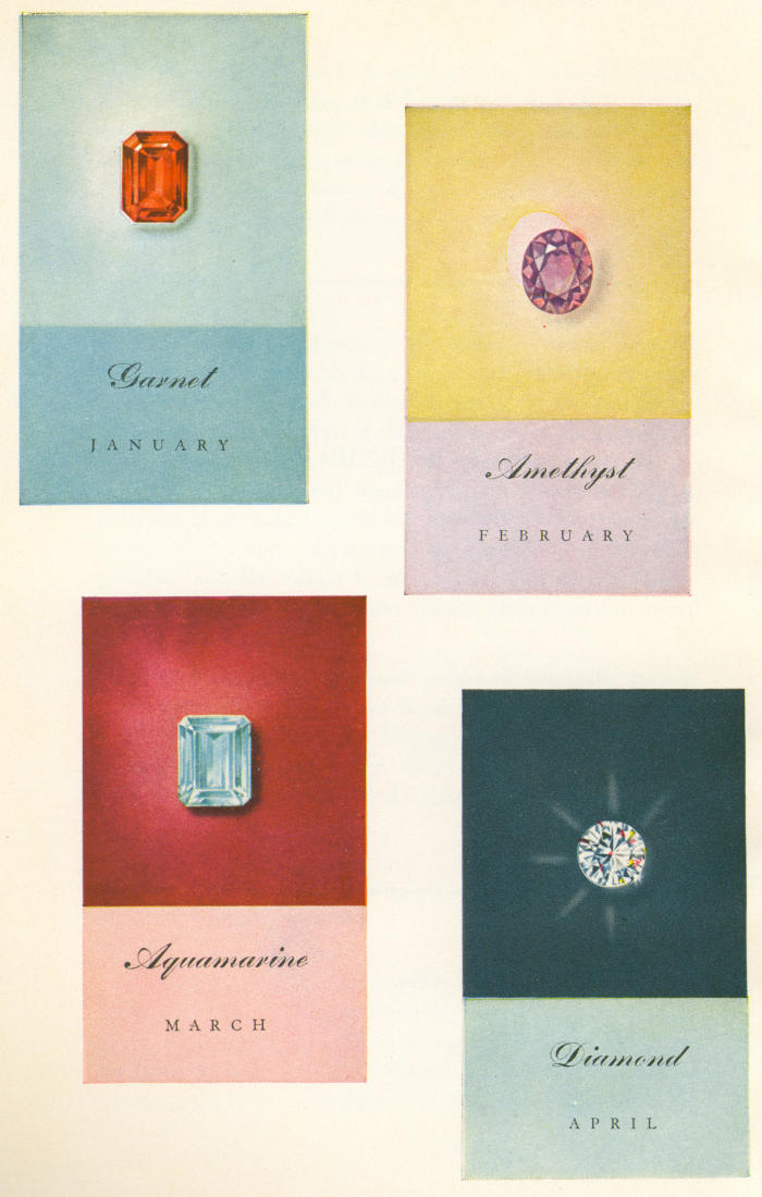 Credits and Acknowledgments: The author wishes to thank all the people who have given time, information and encouragement to the work on this book. Particular thanks are due Mr. George D. Skinner of N. W. Ayer & Son Inc. for supplying invaluable information; Miss Dorothy Dignam, of the same firm, for her inspiring enthusiasm and knowledge; Mr. Lansford F. King, publisher of the Jewelers’ Circular Keystone, for his endless confidence in the work which made the completion of this book possible; and Mr. Albert E. Haase, president of the Jewelry Industry Council, for the many helpful facts from his special fund of knowledge.