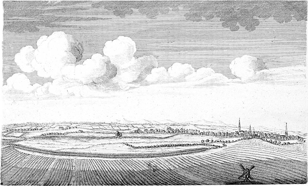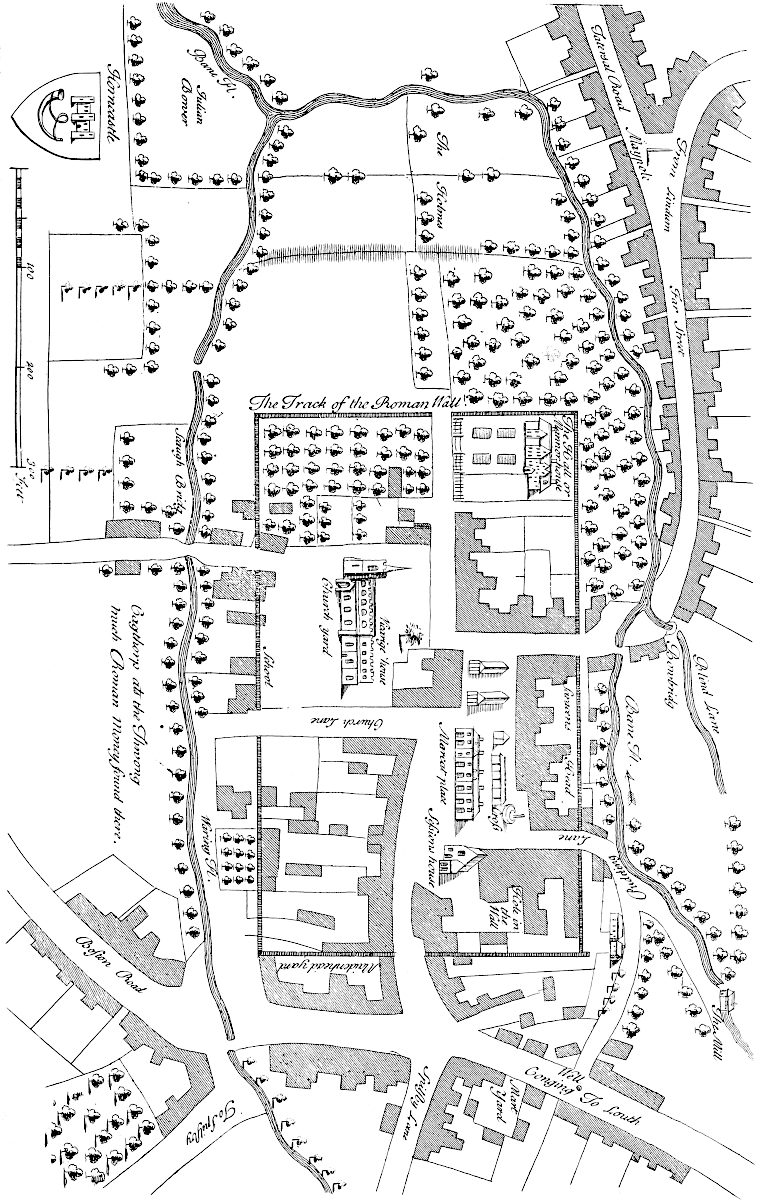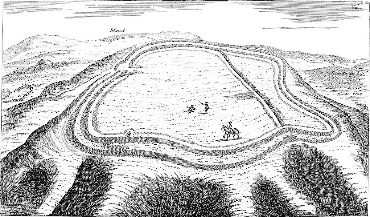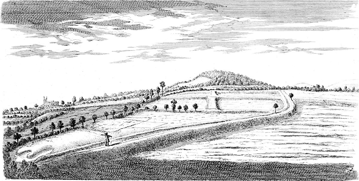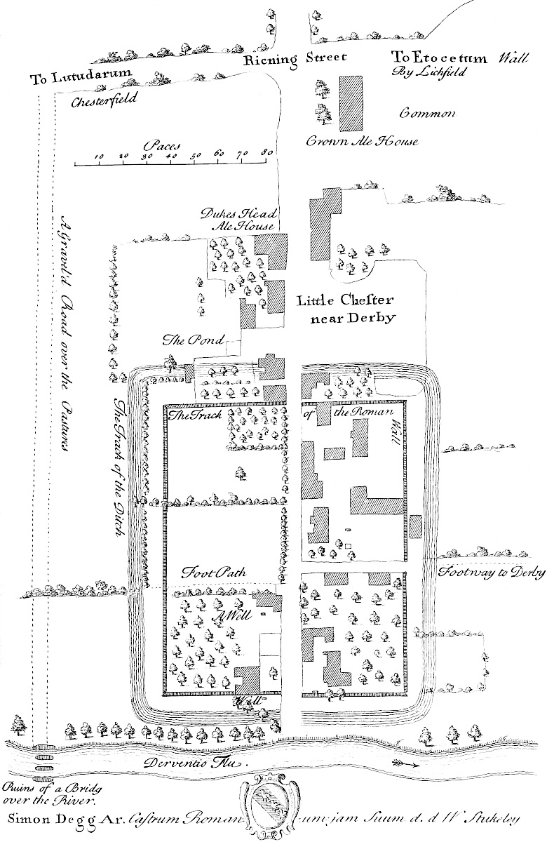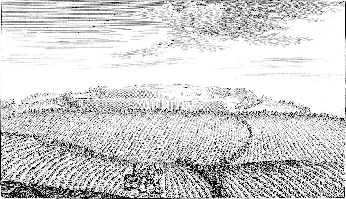 The 18th of October, 1728, I travelled on the Roman road, the eastern branch of the Hermen Street from Sleford, for about three miles southward. I observed that it went not to Sleford town directly, but to the old house of Sir Robert Carr’s, formerly Lord Hussey’s (attainted for treason in time of Henry VIII.) called Old Place. We saw by the way, on the east side the road, a mile or more south of Sleford, an old work, square, ditched about, large, with an entry from the road; the earth of the vallum thrown on both sides.