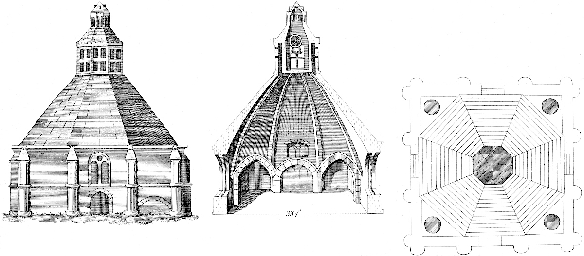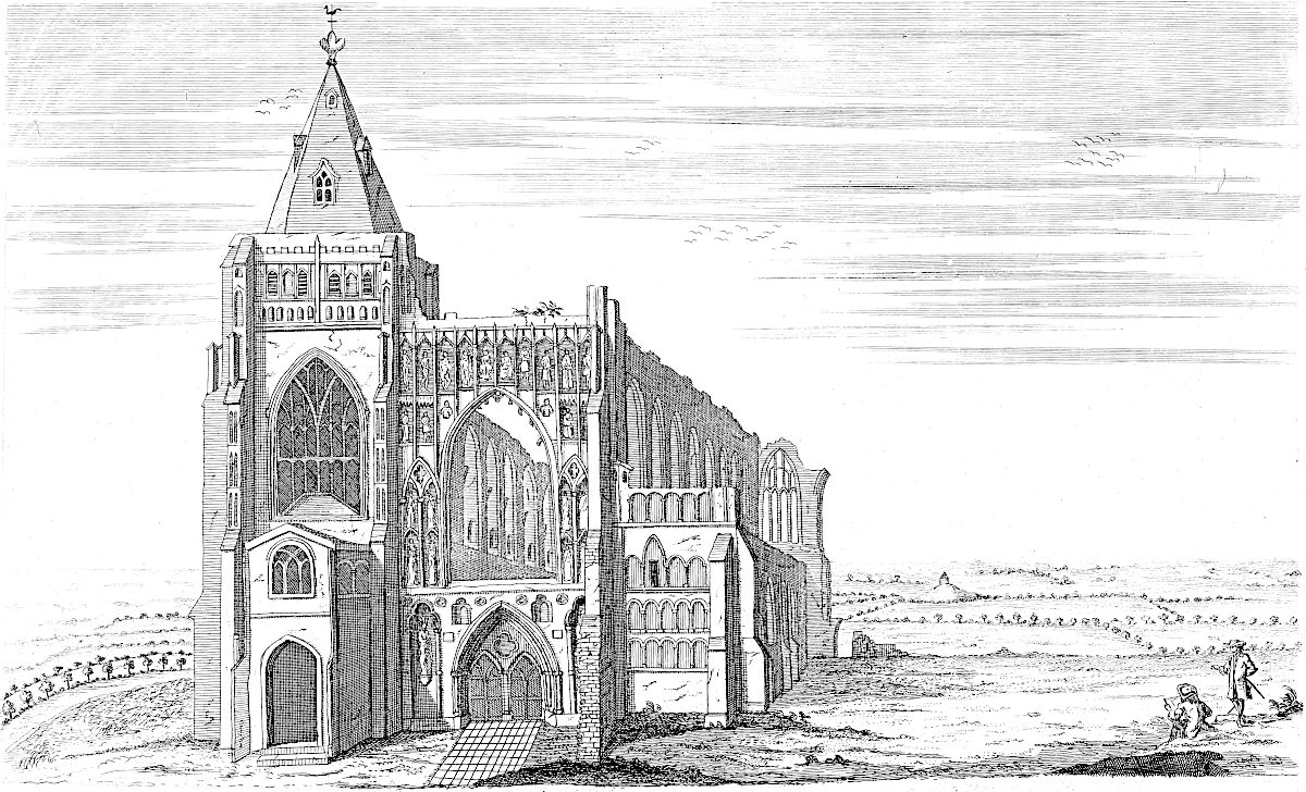 In Lutton was born the famous Dr. Busby, master of Westminster school, who has beautified the church, and founded a school there: he owes his education to the Welbys, an ancient family in this country. I suppose the town has its name from the general drainage of the country, which was here in one channel united: they call such Lades, or Lodes, to this day: this probably is as ancient as any town in Holland. South from it (and therefore)Sutton. Sutton church is of an ancient make, especially the stone work of the steeple: the upper part of the church has been built of brick in the memory of man. John of Gaunt owned Sutton, and other vast manors and townships in this country. At Tyd St. Giles, Nicholas Breakspear was curate, who afterwards became pope Adrian IV. St. James’s chapel is built of a large sort of brick, such as I have seen no where else; not Roman.TAB. XI. Near it is Ivy-Cross, of stone, in a quadrivium; a curious piece, upon Ravensbank.