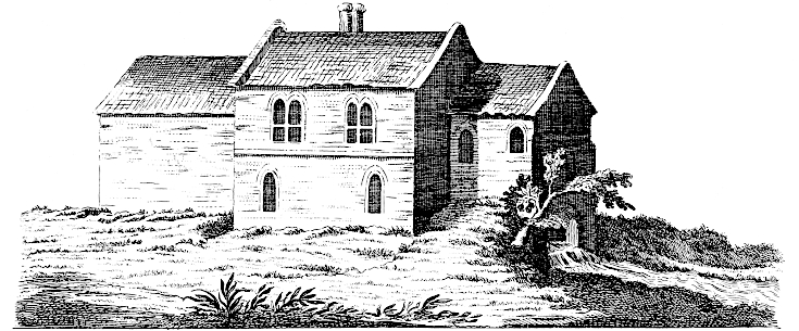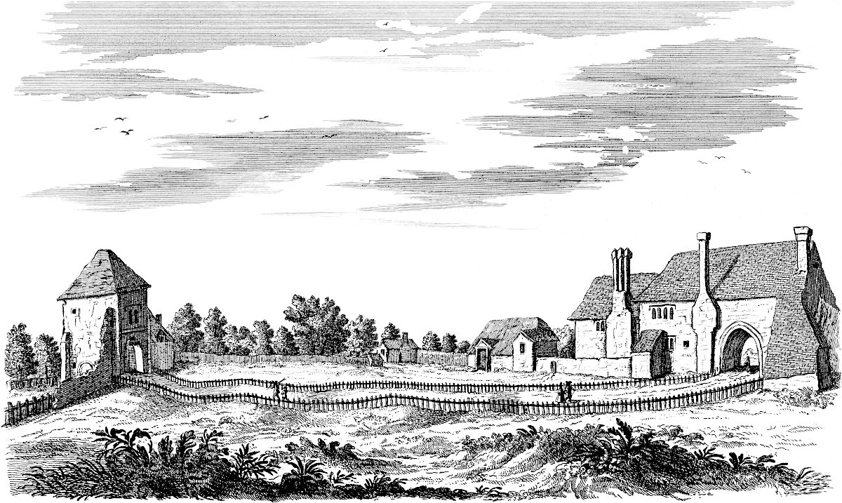 In every parish formerly were many chapels, it being impracticable for people to come so far to one church, though now most of them are demolished, at what time I cannot imagine. No part of England boasts of so many beautiful churches, having generally lofty spires of fine squared stone, fetched from Barneck pits, which are a coarse rag full of petrified shells of all kinds of small fish, and not, as some think, from Norway. And in no very distant times, not a parish without great numbers of gentry, lords, knights, and great families, who made a figure in the world: now scarce any remains of them, but the site of their houses moted round, their tombs in the churches, their arms in the painted windows, where they have by chance escaped the fury of fanatic zeal. Many religious houses formerly there; and nearly the whole country was got into their hands, as appears by the old terriers, or town-books. The only houses of note are at present Dunton hall, in Tyd St. Mary’s parish, lately rebuilt magnificently by Sigismund Trafford, esq. who has likewise inclosed a considerable park with a brick wall; and Cressy hall in Surflet parish, the seat of Henry Heron, esq. in which the lady Margaret, mother to Hen. VII. was once entertained. The house was handsomely rebuilt by the present possessor’s father, Sir Henry Heron, knight of the Bath; but the chapel is old, built, or licensed at least, anno 1309, as an inscription over the door tells us. In it is an old brass eagle with an inscription round it.[20]