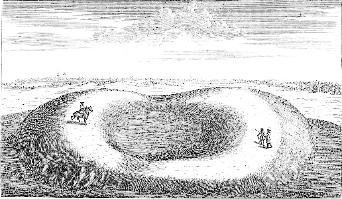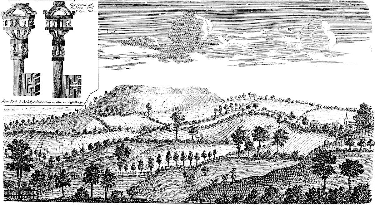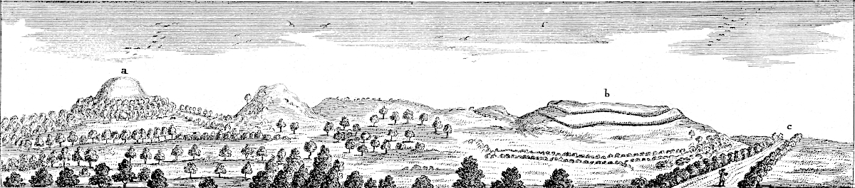 We may be assured that this whole country was well inhabited by the antient Britons, and that as far as the sea coasts, especially the islets and higher parts more free from ordinary inundations of the rivers, or though not imbanked above the reach of the spring tides; for the nature of this place perfectly answered their gusto, both as affording abundant pasturage for their cattle, wherein their chief sustenance and employment consisted, and in being so very secure from incursion and depredations of war and troublesome neighbours, by the difficult fens upon the edge of the high country. Here I have not been able to meet with any remains of them, except it be the great quantity of tumuli, or barrows, in all these parts; scarce a parish without one or more of them. They are generally of a very considerable bulk, much too large for Roman; nor has any thing Roman been discovered in cutting them through; though, a few years ago, two or three were dug quite away near Boston, and another at Frampton, to make brick of, or to mend the highways. I guess these were the high places of worship among our Cimbrian predecessors, purposely cast up, because there 6are no natural hills in these parts; and we know antiquity affected places of elevation for religious rites. No doubt, some are places of sepulture, especially such as are very frequent upon the edges of the high countries all around, looking down upon the fens. Hither seem to have been carried the remains of great men, whose habitations were in the marshy grounds, who chose to be buried upon higher ground than where they lived; as is the case all over England; for the tumuli are commonly placed upon the brink of hills hanging over a valley, where doubtless their dwellings were.