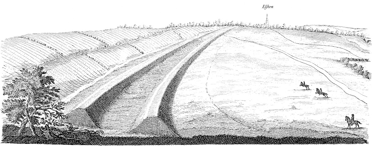The 20th of October, 1726, I traced the Cardike round the out-skirts of Sir William Ellys’s park of Nockton: it runs near the site of the old priory, whose ruins are just visible: it bounds the park entirely on the fen side, and is very perfect thereabouts; the high-country streams from Dunston, and others, running along it. We saw where it crossed a marshy valley, and reached the opposite high ground in its course to Washenburgh. A well of the old priory is well preserved, remarkably good water.