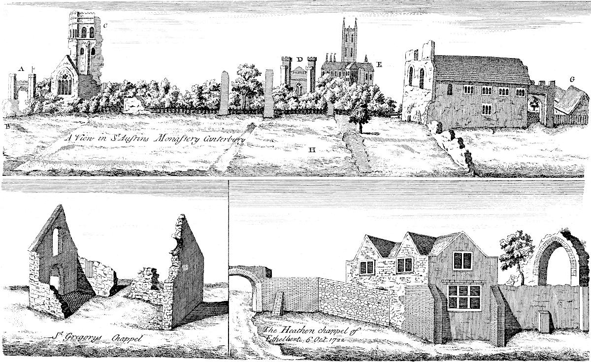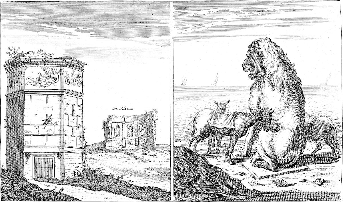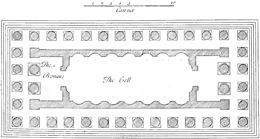 Two or three of the plates are inserted only as heads, being not referred to in the discourse, as Tab. VIII. the ground-plot of the ruins of Whitehall. I myself never saw the palace, but was pleased that I chanced to take this draught of its ruinous ichnography, but the very week before totally destroyed. Thus much I thought owing to the venerable memory of that name, which is ever the word at sea with British ships, and which makes the whole world tremble. Tab. X. is an ancient seal of the bishops of Norwich.[1] This plate the learned and curious Mr. le Neve, Norroy king at arms, lent me out of his good will to promote the work: the seal is remarkable for having letters upon the edge, represented in the empty ringlet; the manner of it is like our milled money; but how it was performed in wax, is not easy to say. Tab. XV. was likewise lent me by Mr. Norroy abovesaid. I design always, in these collections of mine, to insert one plate in a hundred, of some person’s effigies that has deserved well of the antiquities of Britain: it is but a just piece of gratitude to their memory. Tab. XL. (the Greek view at Athens) I took from an original drawing in Mr. Talman’s collection. I have some more of that sort: though they relate not to Britain, I do not fear the reader will be displeased with me on that account. How much rather ought we to lament the scarcity of such! What noble monuments of Greece are sunk into eternal oblivion, through want of Drawing in travellers that have been there in great numbers, or for want of encouragement to those that are able! With what regret do I mention that most beautiful temple of Minerva in the citadel of Athens, without dispute the finest building upon the globe, anno 1694! that year it was casually blown up with gunpowder, and not a drawing of it preserved.